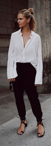 Is that not an oxymoron? I mean, trackies by their very definition are not dressy right? Sort of. I mean they are never going to be a pant you wear to a fancy restaurant or to a party. But the right pair of black trackies can look quite smart. And yep, they do need to be black. No pair of grey marle trackies will ever look dressy enough to wear to the office. A good black, possibly navy, pair on the other hand matched with the right top half and shoes will do perfectly well. *obviously this does not apply to those in corporate work, more so those with a dressy casual vibe.